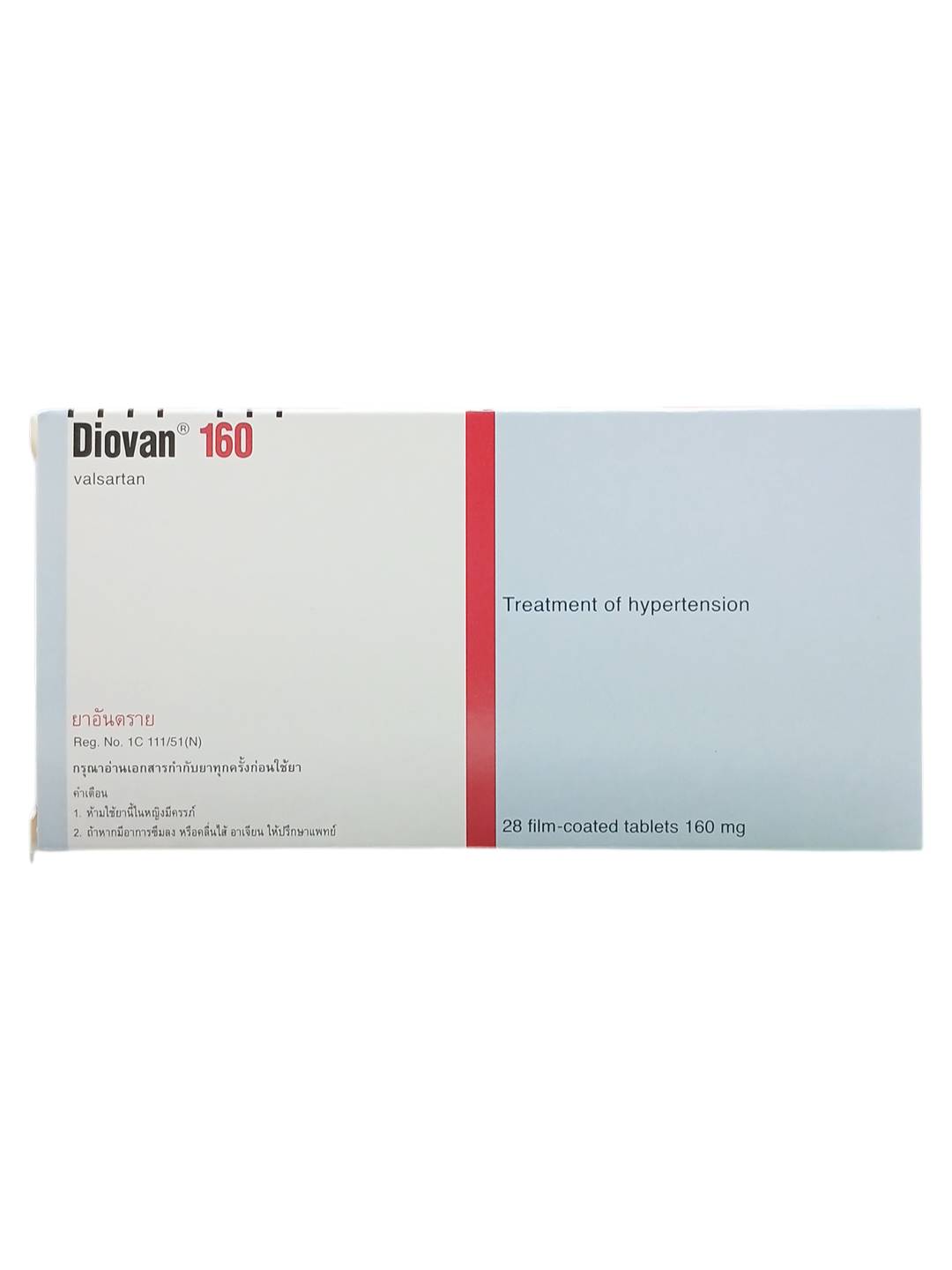 Diovan 160 mg เป็นยาลดความดันโลหิตสูงในกลุ่ม Angiotensin II Receptor Blockers (ARBs) บรรจุ 28 เม็ดต่อกล่อง ใช้เพื่อรักษาโรคความดันโลหิตสูง และช่วยลดความเสี่ยงจากภาวะแทรกซ้อนทางหัวใจ ภายใต้คำแนะนำของแพทย์หรือเภสัชกร